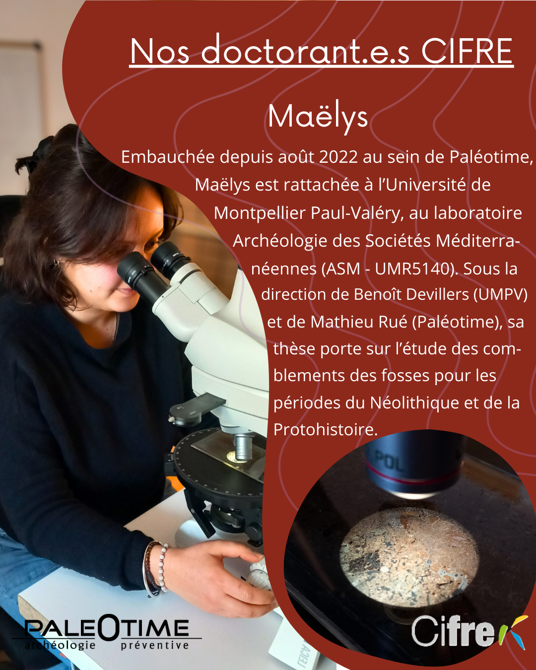 Paléotime, qui a à cœur le développement de la recherche et ses partenariats avec les laboratoires de recherches et les universités, emploie actuellement 3 doctorants en contrat CIFRE.